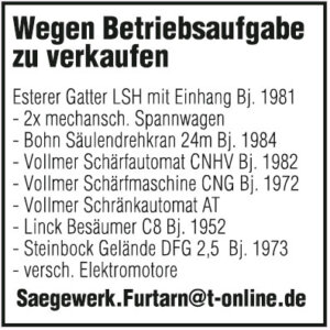 Auszug aktueller Anzeigen aus dem Holz-Zentralblatt